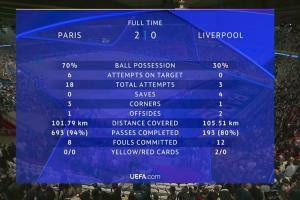 体育资讯04月09日讯 巴黎vs利物浦全场结束,巴黎2-0取得首回合胜利。