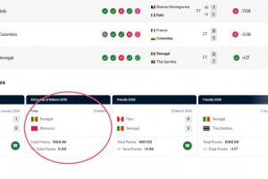 但又有吧友好奇了,那为什么国足在这次友谊赛中输球会被扣分,塞内加尔却没有因非洲杯决赛被判负扣分(显示为+0分,而非负分)呢?