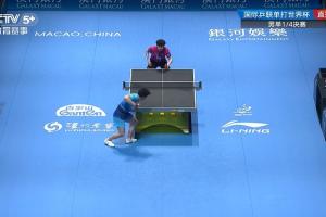 比赛第5局张本智和发球遮挡,随后张本智和鹰眼挑战失败,和裁判沟通。
