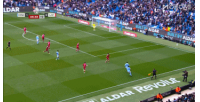 上半场补时阶段,哈兰德头球破门本场双响,曼城2-0领先利物浦